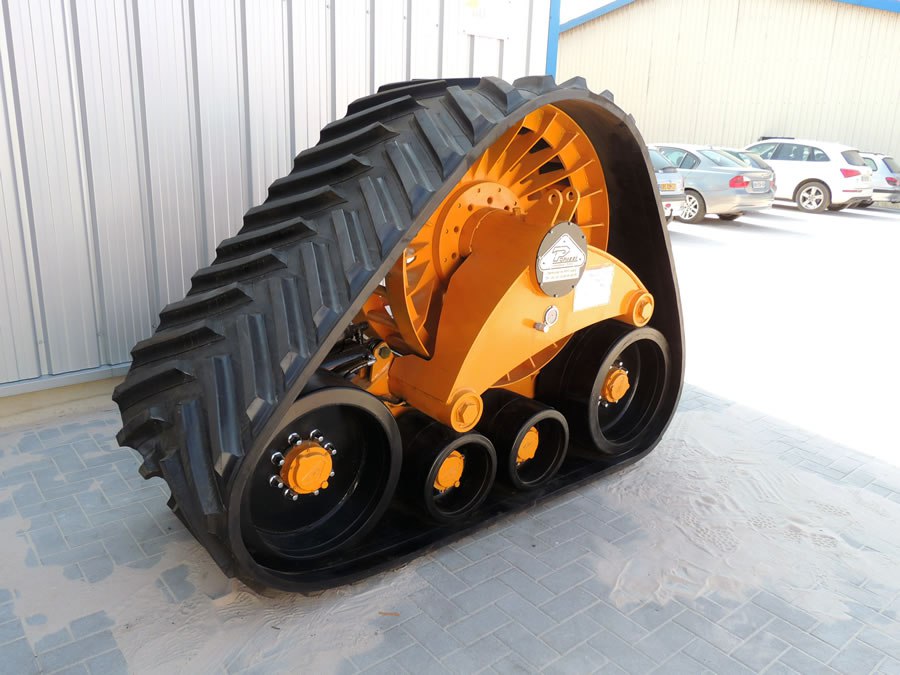 С помощью гусениц для комбайна на рисовых чеках можно вне зависимости от погодных условий удачно собирать урожай. Переоборудование трактора требует выполнения замены обеих пар колес, поскольку у него две оси ведущие. Установка на сельхозагрегаты гусеничного хода позволит фермерам повысить проходимость машин по сравнению с колесными аналогами. Благодаря техническим особенностям конструкции, гусеницы показывают более плотное сцепление с почвой за счет копирования рельефа, что во многом достигается благодаря подвижным тандемным роликам.